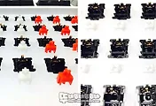 2014.08.15일에 작업한 체리MX 스위치 분해 후 스프링/슬라이더 윤활, 유격필름부착, LED소켓 부착작업의 결과입니다.