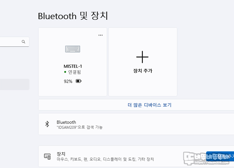 디바이스 키 선택에 따라 MISTEL-1, MISTEL-2, MISTEL-3으로 표현되며 스마트 기기나 PC 연결 시 디바이스 키 선택을 하지 않는 경우 MISTEL-1이 기본값으로 페어링 됩니다.