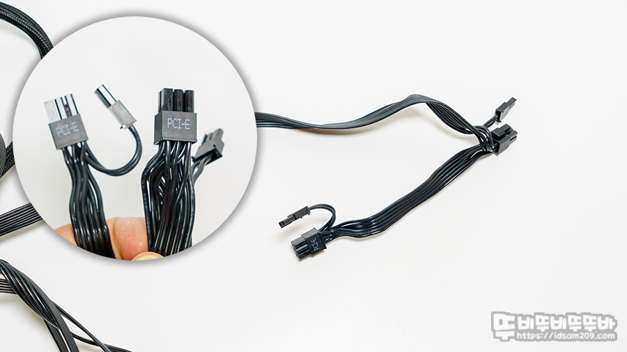 다양한 제품 호환을 위해서 PCIe 6+2핀 케이블도 제공을 하는데 700W 용량이라 그런지 450+150(±20) mm 길이로 커넥터에서 연장되는 형태로 제공되기에 시스템 조립 시 내부 구조에 맞게 사용하실 수 있습니다.