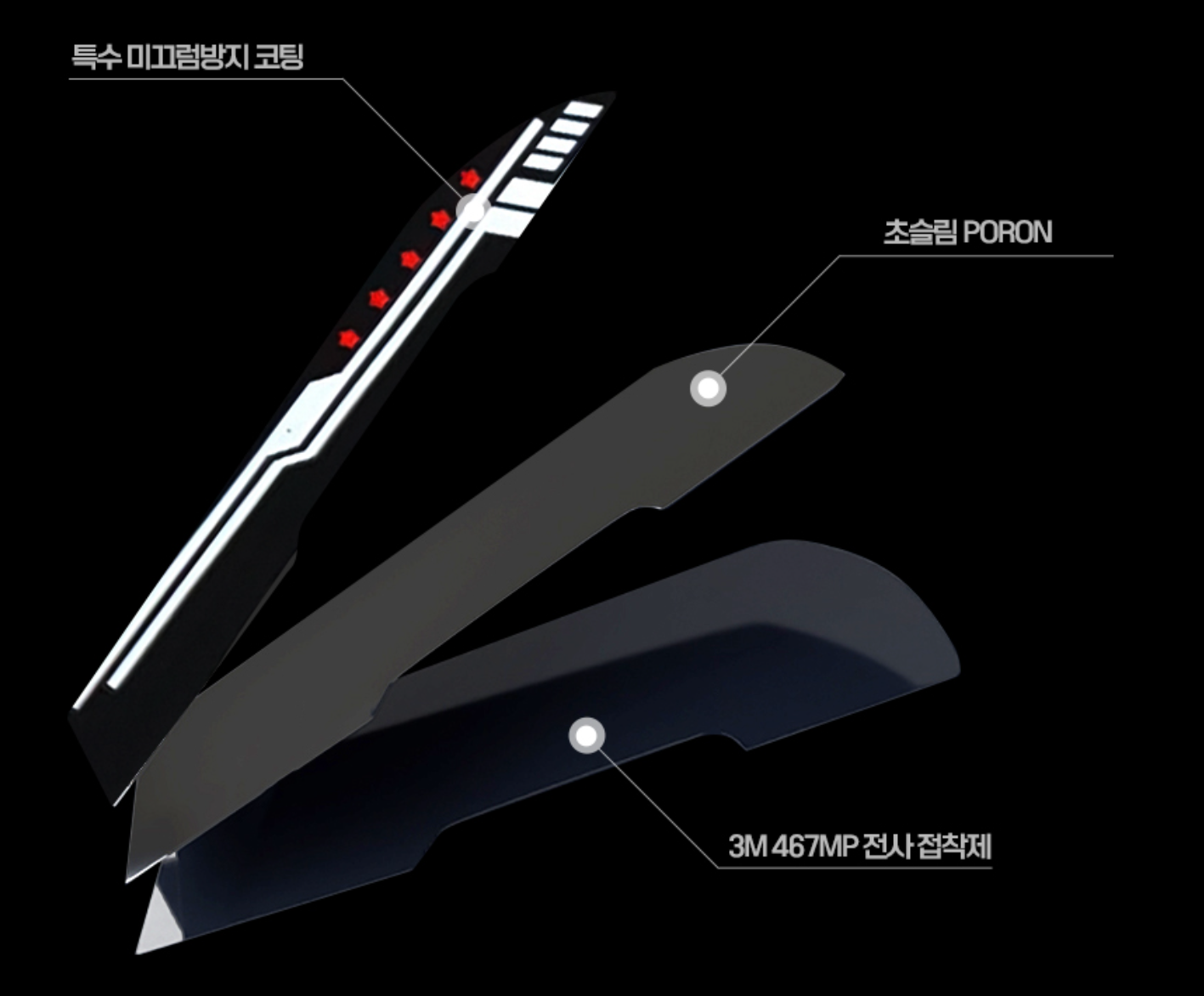 카멜레온 그립 테이프는 포론 소재로 제작되어 그립과 클릭 시 미끄러짐 없는 고정력을 제공하는데요.