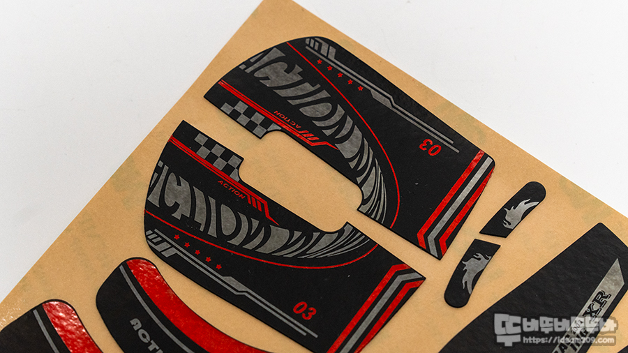온도에 따라 변화되는 특수한 소재가 사용된 카멜레온 그립 테이프는 Track Rush 시리즈로 레이싱 이미지를 기본 베이스로 미끄럼 방지 및 얇은 포론 베이스로 그립감과 안정감을 제공하는 제품으로 X-Raypad에서 마우스 패드에 이어 꽤 만한 그립 테이프를 선보이고 있는데요.