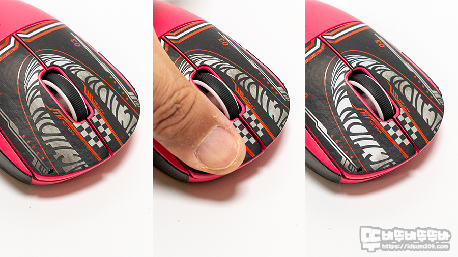 마우스에 부착하기 전에 손을 1~2초가량 눌렀다가 떼어보니 지저분해 보이는 부분이 하얗게 변화되는 것을 확인할 수 있었습니다.