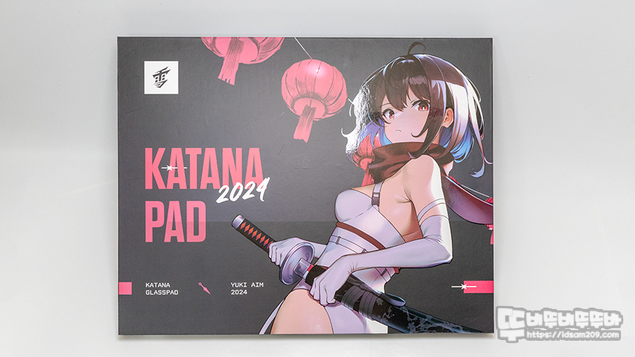 2024년 한정판으로 출시되는 유키에임 카타나 시티 강화유리 패드의 패키지는 카타나를 들고 있는 캐릭터를 메인으로 잘 표현하고 있습니다.