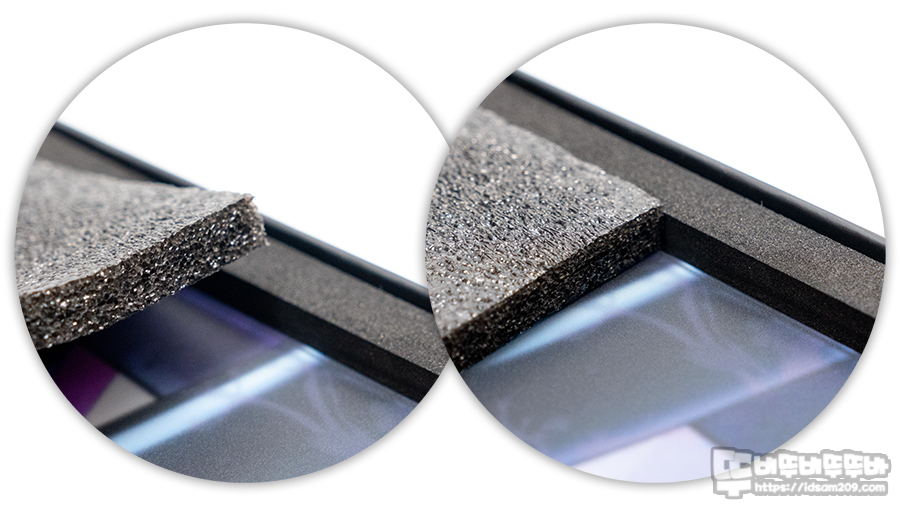두툼한 하드 패키지는 견고하게 밀봉 처리되어 있으며 패키지를 오픈하면 발포 스펀지 틀에 딱 맞게 포장된 강화유리 패드를 마주하게 되는데 사진을 찍어놓고 보니 마치 액자에 담긴 사진 느낌이 드네요.