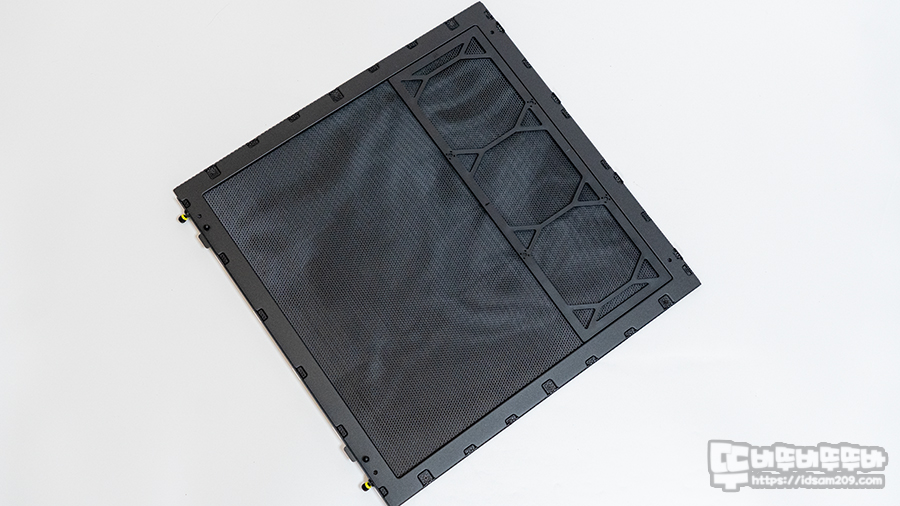 솔리드 형태가 아닌 메쉬 타입으로 디자인된 사이드 패널의 경우 겉면은 메쉬 타입이지만 안쪽에는 먼지 필터가 부착되어 있는 형태로 먼지 유입에 크게 걱정되지 않네요.