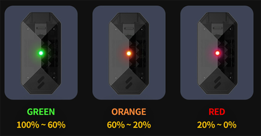 LED 인디케이터는 배터리 잔량에 따라 그린, 오렌지, 레드 컬러로 표현되니 참고하시기 바랍니다.