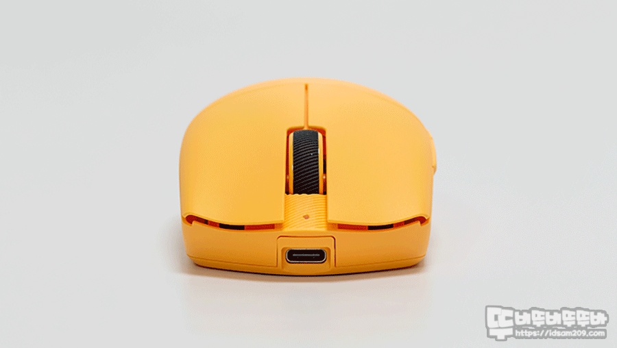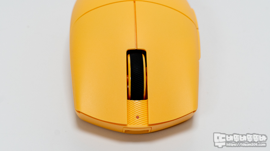 휠 스크롤 전면에는 충전 시 배터리 잔량을 표현해 주는 관적인 LED 인디케이터 내장 그리고 엉덩이 부분은 프린팅이 아닌 음각으로 로고를 표현하고 있어 전체적으로 깔끔한 느낌을 줍니다.