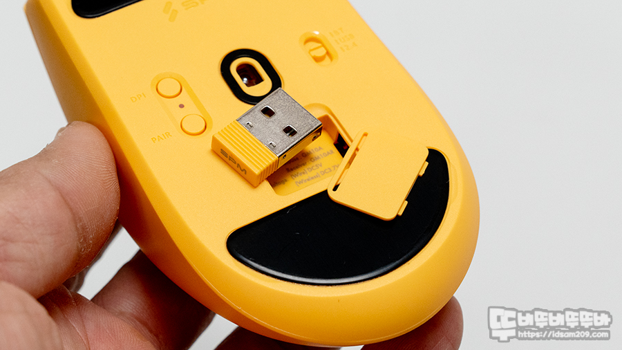 SPM GM10A 게이밍 마우스가 조금 독특한 부분이라면 절개형 버튼의 면적과 마우스 상단 하우징 면적이 5:5 비율로 마우스 바닥면의 DPI 버튼을 한 손으로 조작 시 클릭 버튼이 눌릴 수밖에 없는 구조이기에 게임 플레이 시 게임 중에는 DPI 변경을 하지 않는 쪽을 추천드립니다.