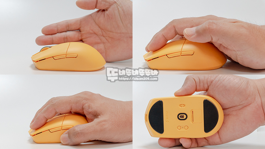 좌우 폭이 좁은 경우 핑거 그립 사용 시 마우스 그립에 힘이 들어가 버튼 클릭이 조금 불편함이 있는데 GM10A 마우스는 반대로 폭이 넓어 그립이 안정화되니 클릭감이 편안했습니다.