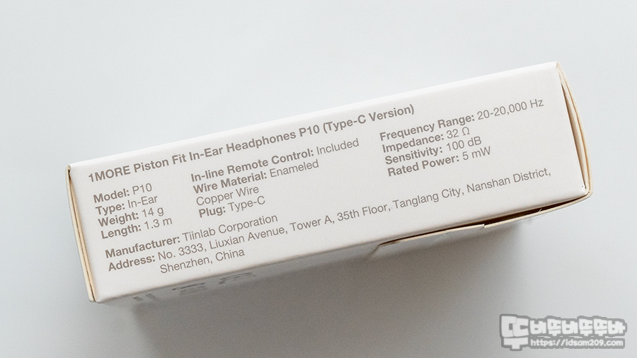모델: E1009 (P10) / 타입: 인 이어 / 연결 방식: 유선 USB-C / 무게: 14g / 케이블 길이: 1.3 m / 인라인 컨트롤러 포함 /