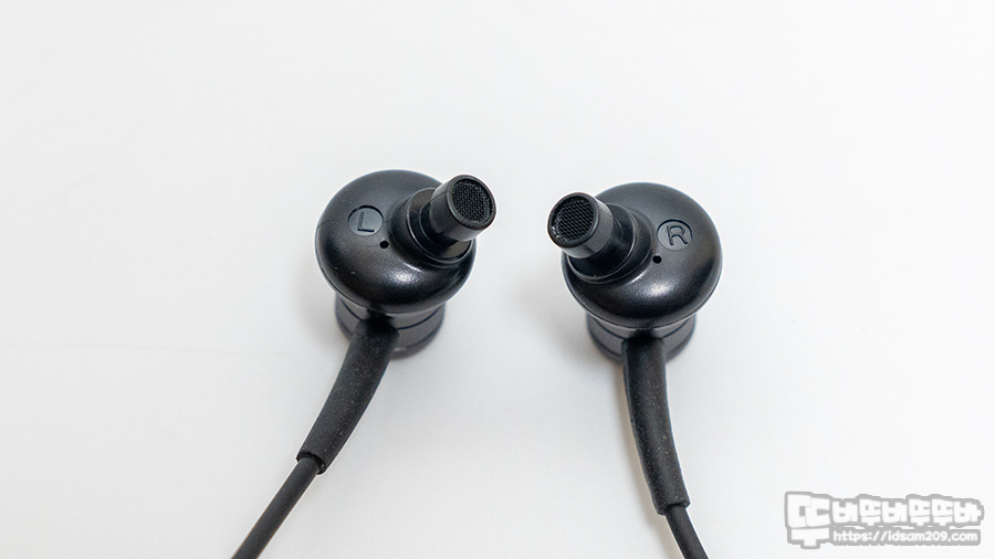 이어폰 노즐 부에는 좌우를 구분하는 표기가 되어있지만 이어폰의 디자인 특성상 반대로 착용할 수 없는 구조라 표기에 의존할 필요는 없네요.