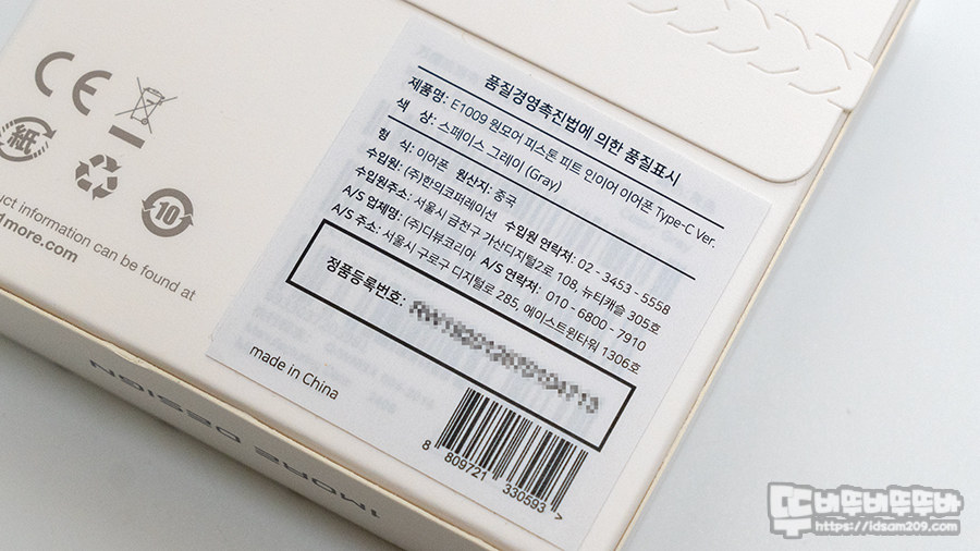 "C 타입 유선 이어폰 원모어 피스톤 피트 E1009 리뷰를 위해 1MORE 코리아 본사 정식수입 제품을 지원받았습니다"
