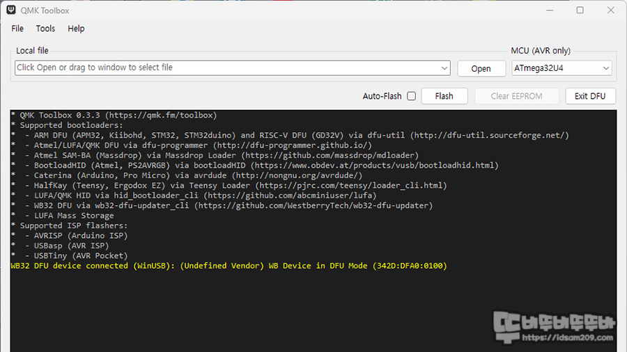 이후에는 QMK Toolbox를 이용하여 펌웨어 파일을 업로드하기 위해 부트로드로 접속해야 합니다.