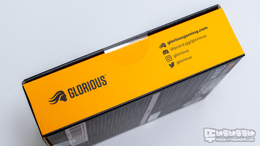 제품 패키지는 제품의 이미지와 모델명 글로리어스의 로고인 머리를 휘날리는 오딘 아이콘을 은박으로 고급스럽게 인쇄를 하였고요.