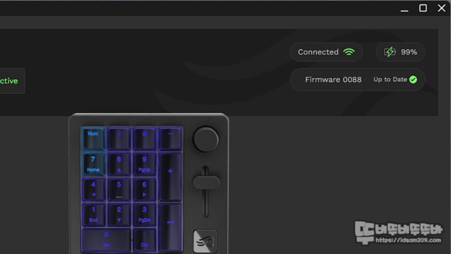 글로리어스의 GMMK 제품은 전용 소프트와 오픈소스의 QMK를 지원하는 독보적인 제품인데 75% 배열의 GMMK PRO와 궁합이 맞는 제품으로 출시한 GMMK NUMPAD는 키보드 두 개를 유선으로 연결하는 불편함을 해소하기 위해 블루투스 연결을 지원하고 있어 활용도가 좋은 편입니다.