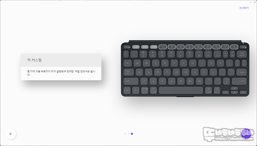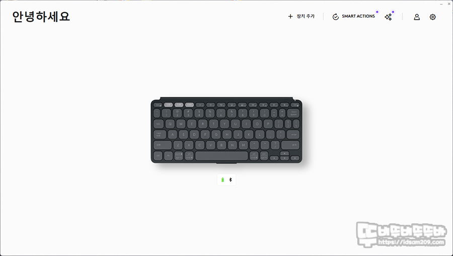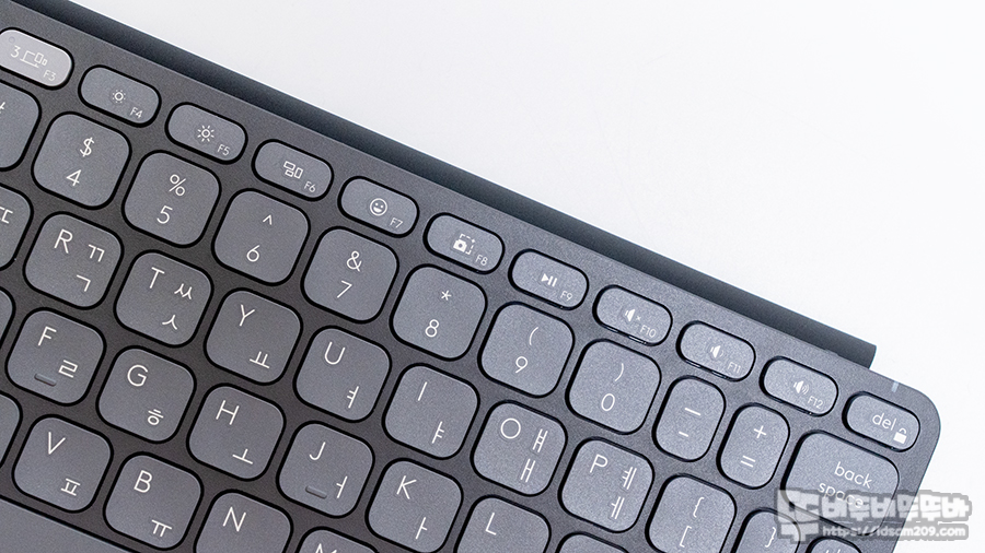 키보드 자판 디자인은 로지텍 mx keys mini 레이아웃과 동일하지만 컴팩트 디자인에 맞게 키캡 디자인을 둥글게 또는 얇게 디자인한 느낌입니다.