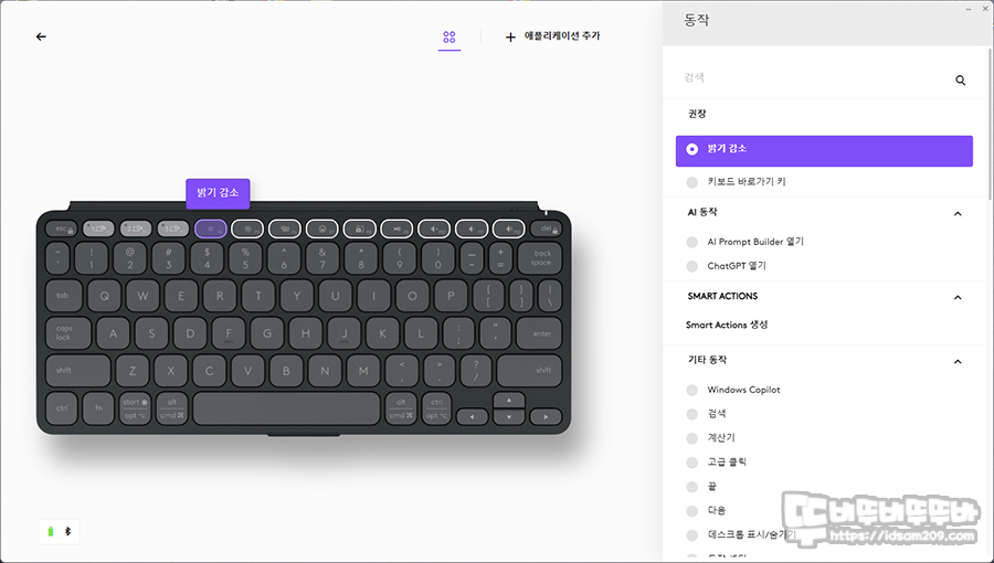 기기마다 다르겠지만 윈도우즈가 설치된 PC에서는 블루투스 기기 항목에서 또는 전용 소프트웨어인 Logi Options+ 소프트웨어 화면에서도 확인이 가능합니다.