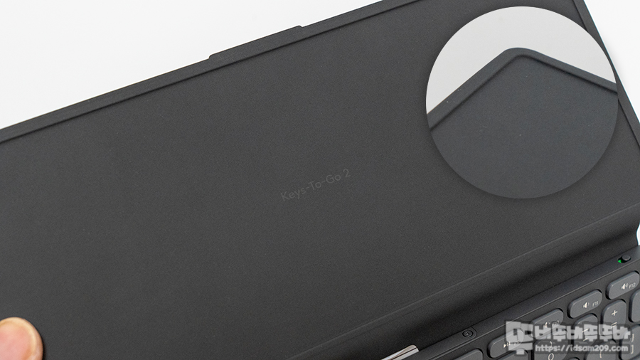 로지텍 Keys-To-Go 2는 키보드를 중심으로 앞뒤를 보호하는 커버가 일체형으로 부착된 게 특징으로 가로길이 250mm, 세로 길이 105mm, 키보드 높이 4.35~8.97mm로 가방에 휴대하기에 부담 없는 크기로 디자인되었습니다.