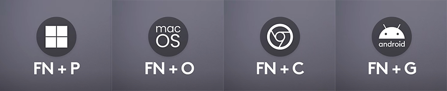 멀티 OS를 지원하는 만큼 Fn + 조합으로 P(윈도우즈), O(MAC), C(크롬), G(안드로이드) 운영체제에 맞게 활용이 가능하니 OS 전환 단축키는 참고하시는 게 좋습니다.