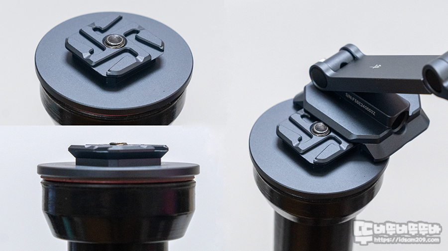 F22 마운트를 먼저 장착하고 홀더를 추가하는 경우 F22 마운트 위로 삼각대 1/4" 스크류가 살짝 삐져나와서 홀더 결합이 불가능해서 마운트와 홀더를 결합한 상태에서 장착했습니다.