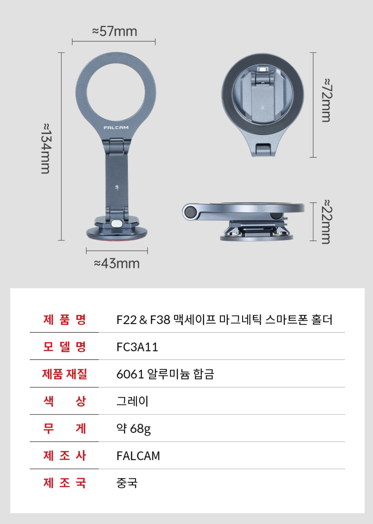 유쾌한생각 - [FALCAM] 팔캠 FC3A11 맥세이프 마그네틱 스마트폰 홀더 F22 F38
