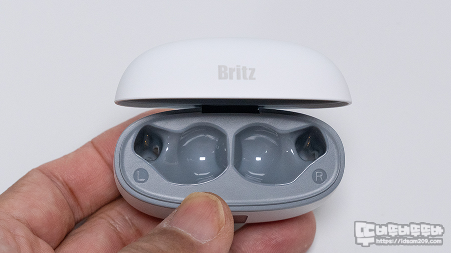 브리츠 Broad7 충전 케이스 무선 이어버드 양쪽 8g, 충전 케이스 36g 등 총 43g 무게로 착용 및 휴대 시 부담이 없는 편이며 플라스틱 하우징이지만 UV 코팅 처리로 매트한 느낌을 주는데 표면이 뽀송뽀송한게 좋더라고요.