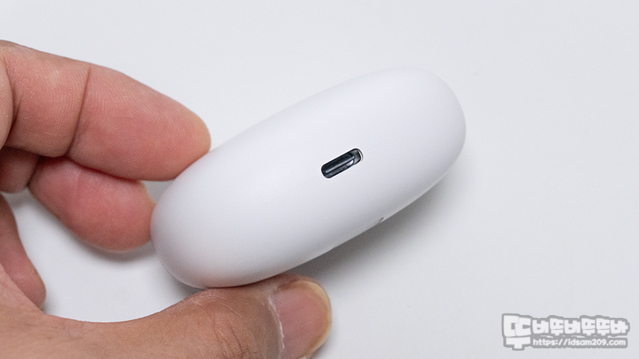 충전 케이스는 뭐랄까 조약돌 느낌이고 바닥면에 USB-C 단자로 구성되어 있습니다.