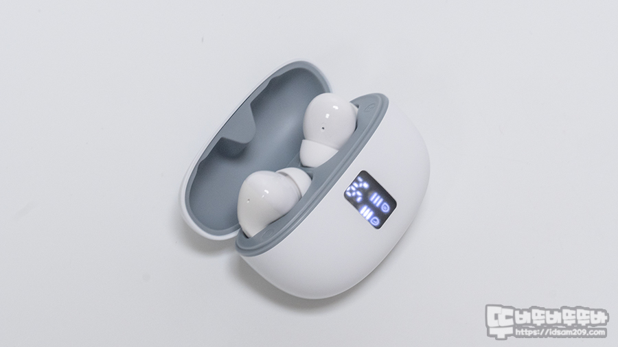 300mAh 배터리를 내장한 충전 케이스는 충전 수 숫자가 점멸하면서 % 숫자를 보여주며 완충까지 약 1.5시간이 소요됩니다.