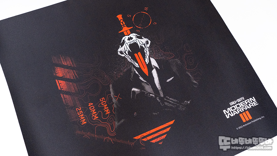 공식 라이선스 Call of Duty : Modern Warfare III 아트 게임 마우스패드는 450mm x 400mm x 2mm 사이즈로 노멀한 Qck 패드와 다르게 표면을 이미지를 열가공처리하여 마우스 글라이딩 시 이질감이 없이 매끈한 게 특징인데요.