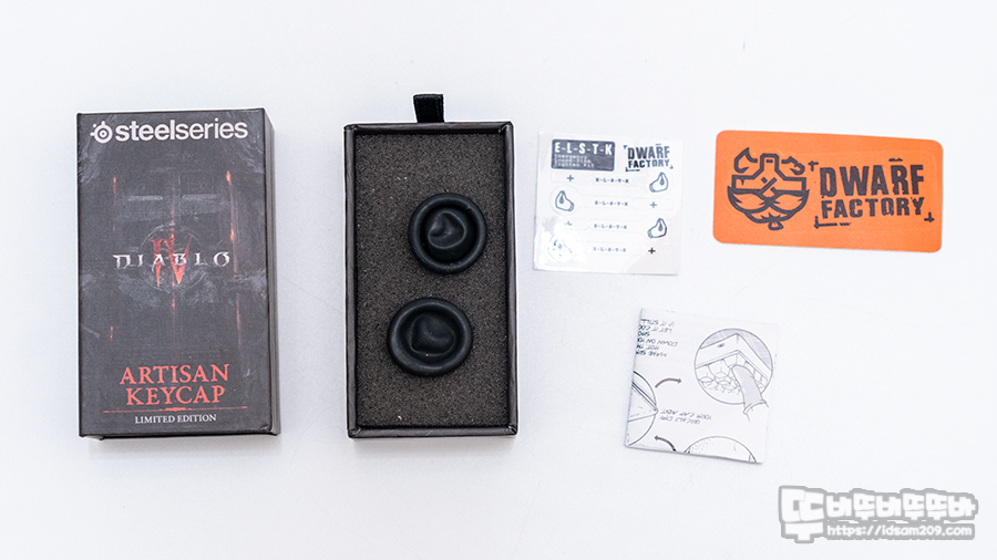 첫 번째로 작은 상자에 Diablo IV로고와 Artisan 키캡 문구가 인쇄된 MX 기계식 스위치 호환 가능하며 2,160개 한정판으로 제작되어 키캡에는 고유의 넘버링이 되어있다고 하네요.