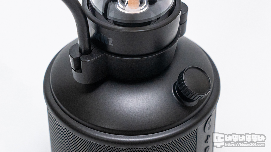 제품의 본체는 꽤 묵직한 편으로 전면에 10W 출력의 52mm 드라이버 유닛 그리고 뒤편에 패시브 라디에이터로 구성되어 풍성한 저음을 들려주어 야외에서 LED 랜턴과 함께 중후한 사운드를 들려줍니다.