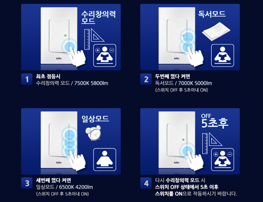 드론 공부방등은 5800 / 5000 / 4200 루멘 3단계 밝기조절 및 7500K / 7000K / 6500K 색온도를 지원한다니 기대가 되더라고요.