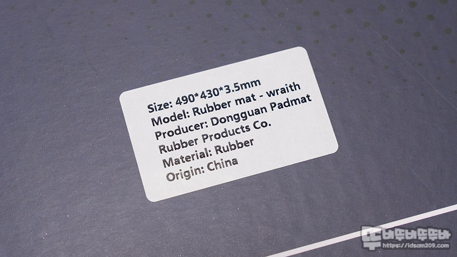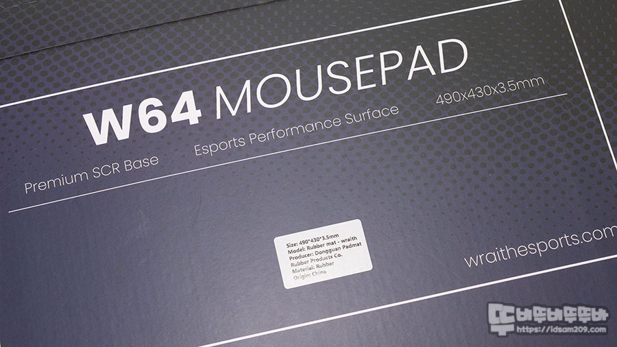 프리미엄 SCR 베이스, e스포츠 퍼포먼스 표면, 490 X 430 X 3.5mm 사이즈 정보 그리고 스펙 정보가 인쇄된 라벨 스티커를 확인할 수 있네요.