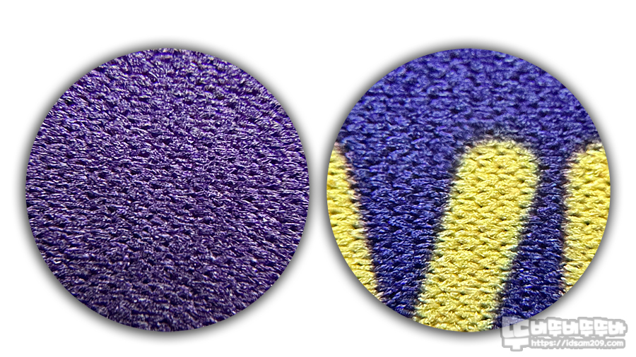 마우스 테두리를 감싸고 있는 오버로크는 패드 두께인 3.5mm 보다 얇게 되어 있어 패드 모서리 부분에 손을 걸쳐도 손바닥 눌림이 없는 편이네요.