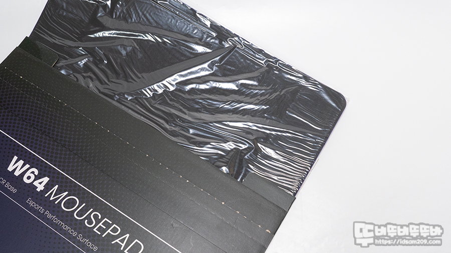 종이 패키지를 오픈하면 비닐로 포장된 마우스 패드 모습을 마주하게 됩니다.