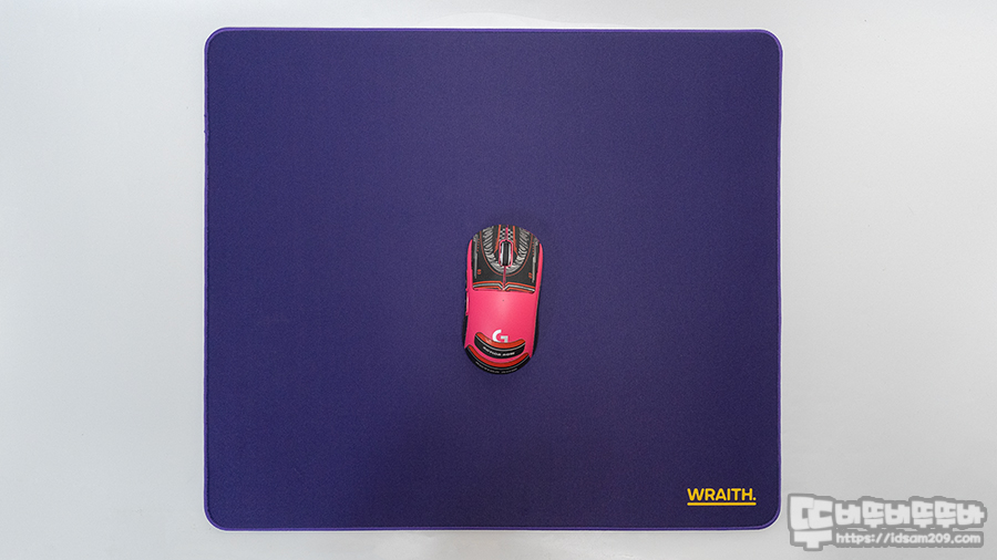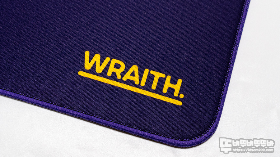 마우스 패드 우측 하단에 인쇄된 WRAITH 로고는 패드 표면 패브릭에 열가공처리로 인쇄되어 만져지진 않습니다.
