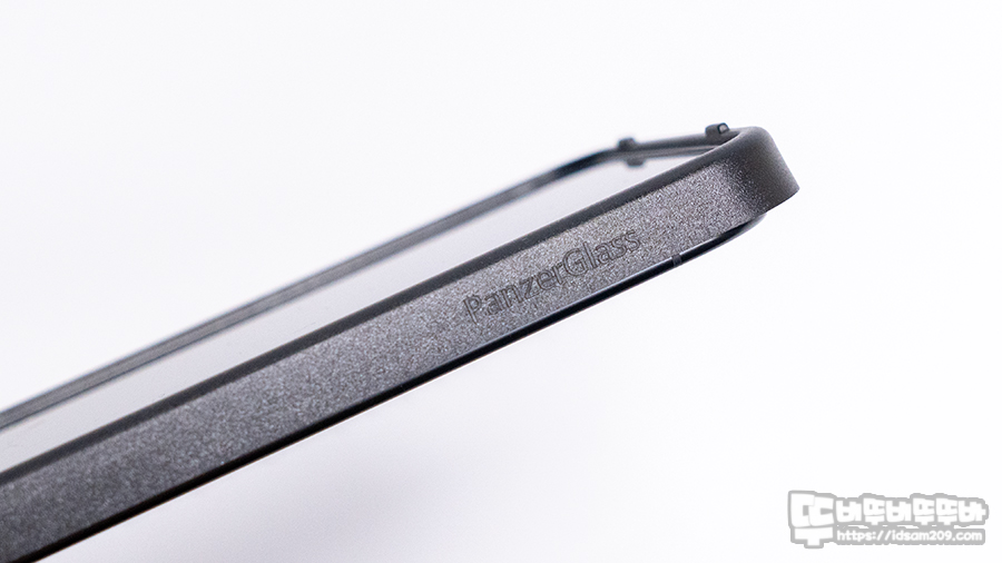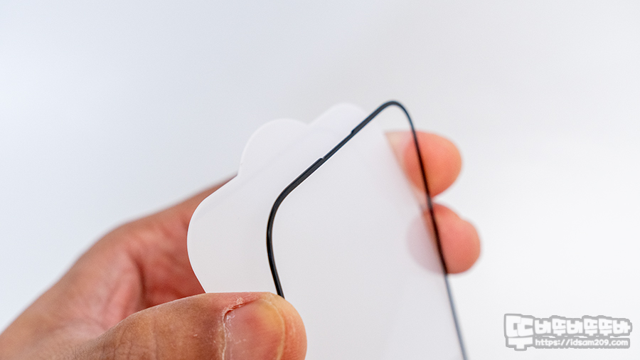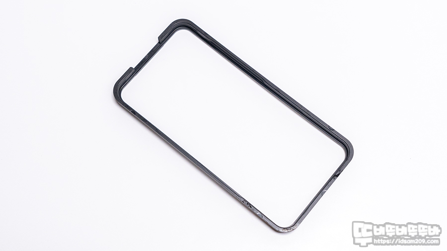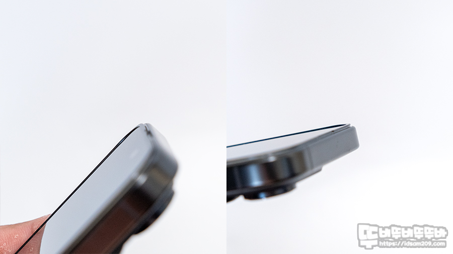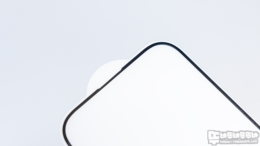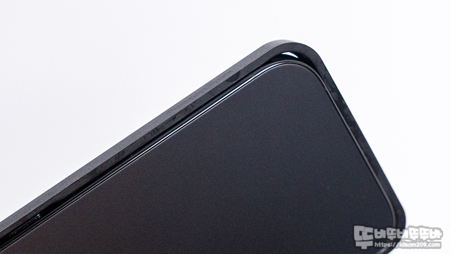 강화유리 필름을 엣지면을 보면 0.33mm의 초슬림 강화유리 필름에 엣지면 테두리에 검정색 알루미늄 베젤의 두께를 느낄 수 있네요.