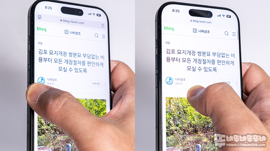 전체적인 액정화면의 터치하는 부분에서 작동이 잘 되는 편이나 오른손으로 아이폰을 사용하면서 한 손 제어를 하는 경우 엣지면에서 시작하는 화면 넘김이 랜덤하게 작동되지 않는 문제를 확인할 수 있었습니다.