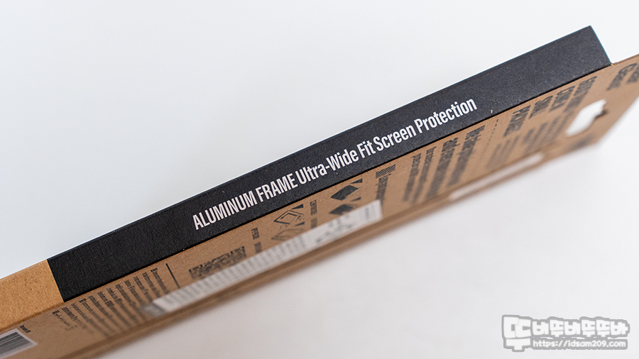 패키지 전면에는 6.3인치 아이폰 16 Pro용 제품임을 표기와 그 외 알루미늄 프레임, 모서리 파손 방지, 기존 제품 대비 3배 강해짐 등을 강조하고 있습니다.
