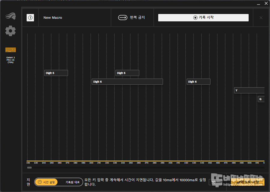 매크로는 이전 버전과 동일한 가로 방식의 타임라인 저장 방식을 사용하고 있어 매크로 입력 후 수정하는데 시간이 많이 필요할 수 있습니다.