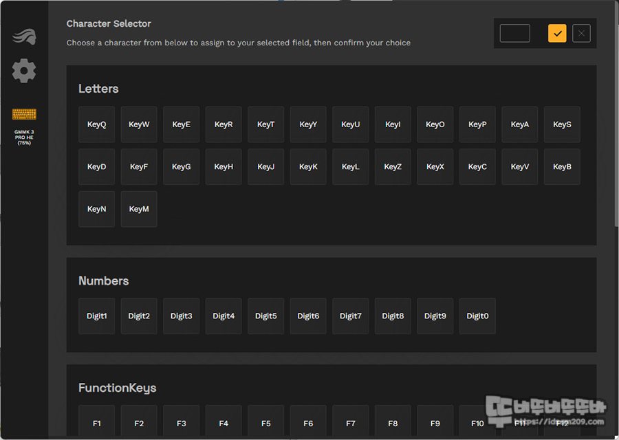 개별 키 지정 시 키보드 이미지에서 표시되는 부분은 없고 우측 하단에 선택 키 정보를 보여주는 부분으로 설정값을 확인할 수 있는데 지정되는 키가 많은 경우 위/아래로 스크롤 해야 모든 내용을 확인할 수 있는 만큼 개별 키 설정 시 천천히 작업하시기 바랍니다.