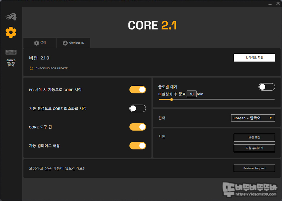 환경설정 메뉴의 구성은 기존과 동일하며 한국어 언어를 지원하는 게 눈에 들어오네요.