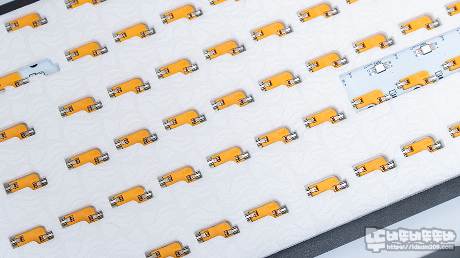 기보강 그리고 기판 하판에는 스티로폼? 느낌을 주는 발포폼 흡음재를 사용하고 있어 확실하게 소음을 잡아주고 있습니다.