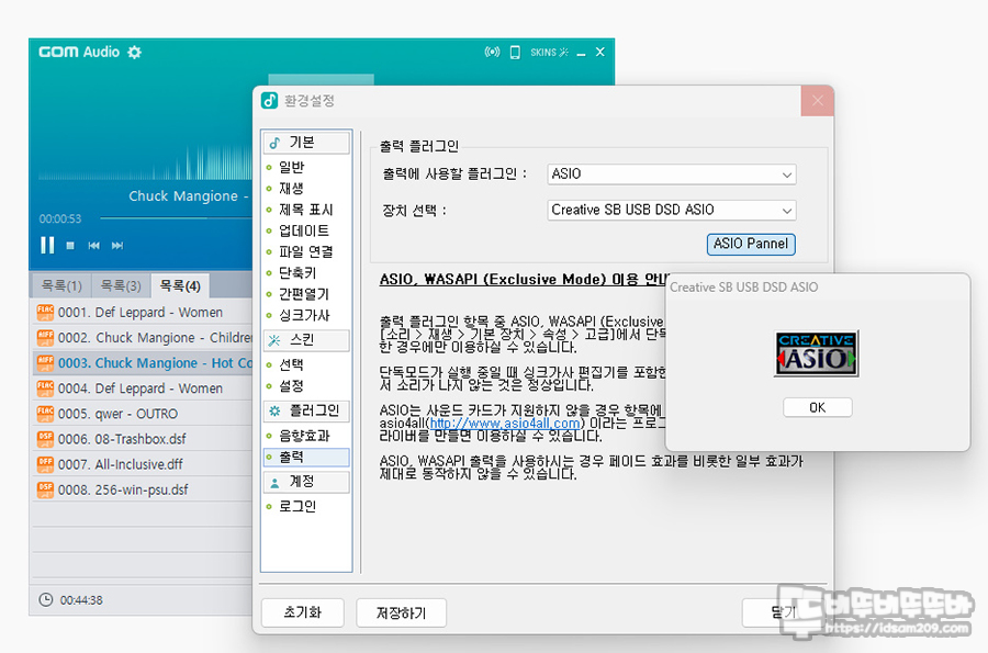 전용 드라이브 설치 시 설치되는 ASIO 플러그인을 활용하면 음원의 비트와 Hz에 맞게 출력이 변경되어 출력이 된다는 점인데요.