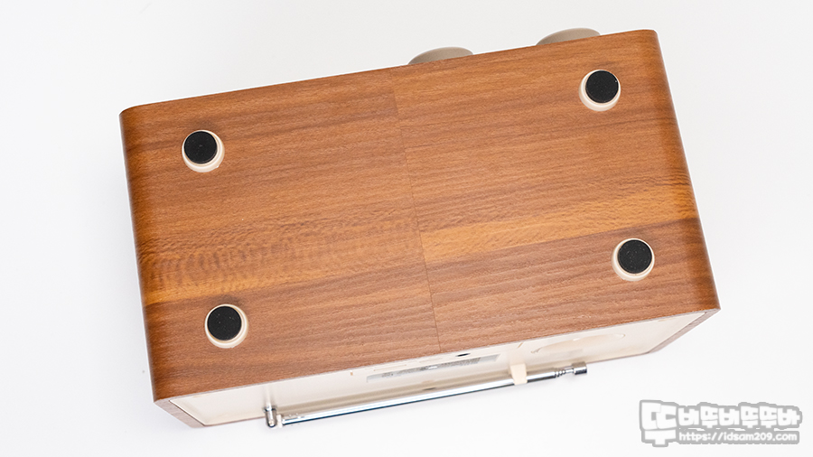 브리츠 BZ-V1 우드 인클로저에 스킨을 더해 나무 느낌을 주고 있으며 전면에 큼지막한 스피커와 LED 디스플레이, 두 개의 회전 노브와 기능 버튼 구성은 클래식한 느낌과 현대적인 느낌을 잘 믹스한 느낌입니다.