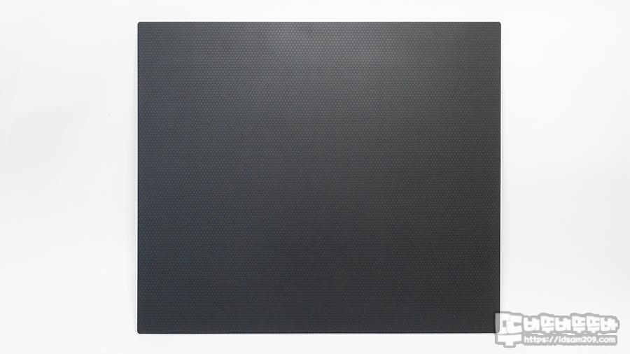1.5mm 두께의 강화유리 패드 바닥면에는 1mm 두께의 고무 베이스가 부착되어 있으며 접착성이 있는 투명 필름이 부착되어 있는 게 특징인데요.