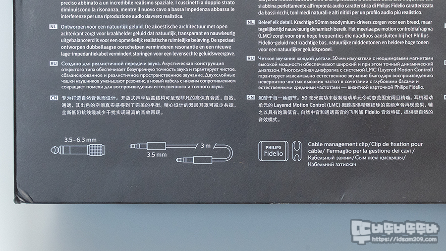 제품 구성품으로는 3.5 to 6.3mm 변환 아답터, 3.5mm 3m OFC (무산소 동선) 케이블, 케이블을 정리해 주는 클립을 제공해 주네요.
