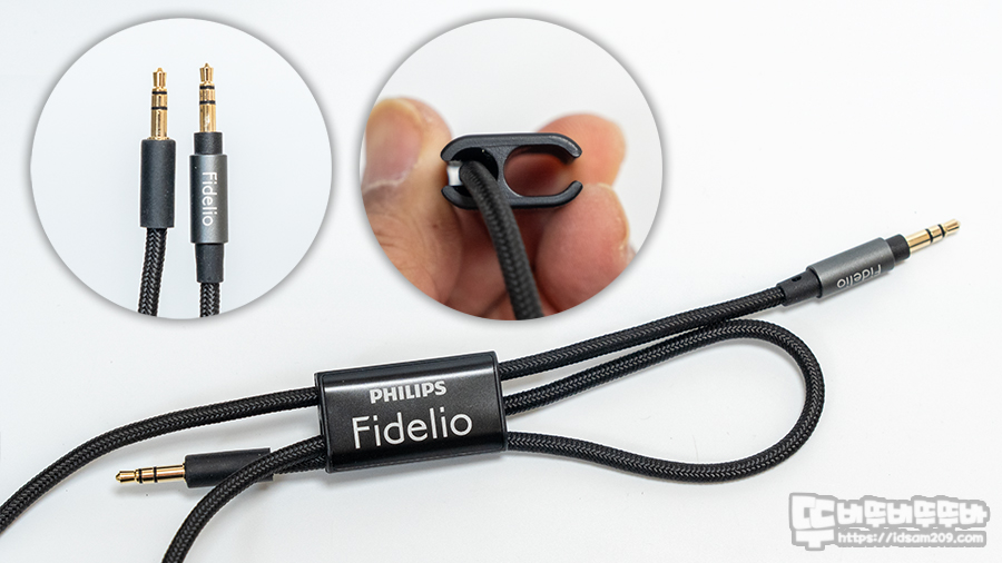제품에 동봉된 3mm 케이블은 하이파이 헤드폰답게 3.5mm 무산소 동선 케이블을 제공하며 긴 케이블을 적당히 클립을 이용 시 넓게 구성된 부분에 케이블을 2번 끼워서 고정하는 형태로 활용이 가능하니 참고하시기 바랍니다.