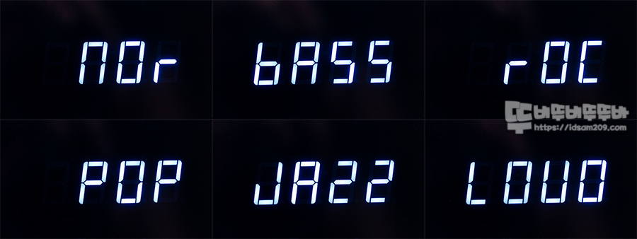 노멀 - 베이스 - 록 - 팝 - 재즈 - 라우드 등 다양한 사운드 설정으로 음악을 감상할 수 있으니 음악의 컬러에 맞게 사용하시면 좋습니다.