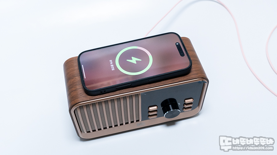 브리츠 BZ-JE100는 레트로 디자인의 스피커 그릴과 목재 느낌의 외형에 무선 충전은 지원하는 올인원 블루투스 스피커로 인테리어 오브제로 상당히 리트가 있는 제품인데요.